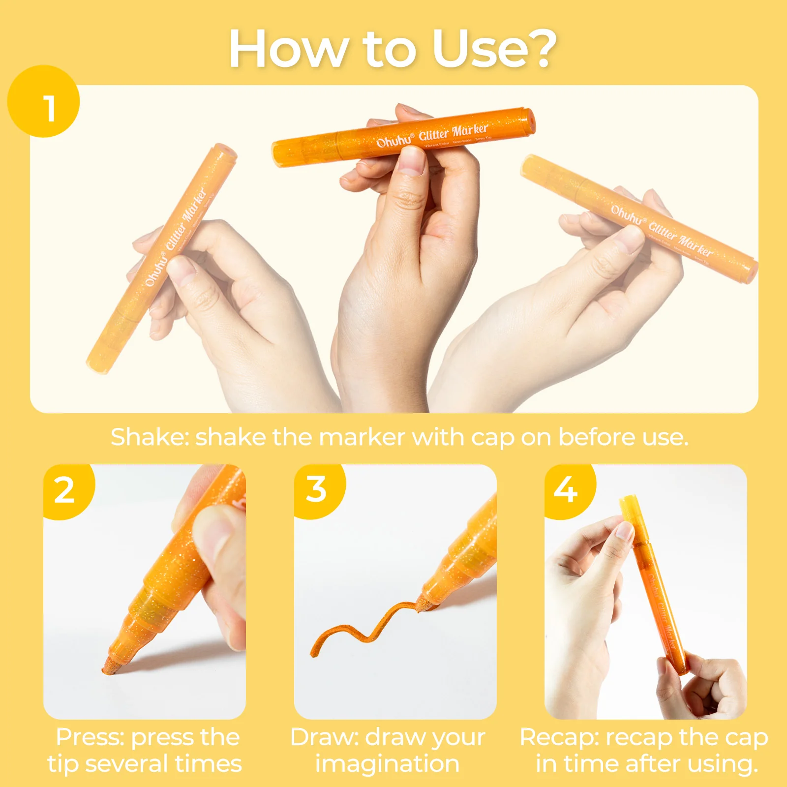 Add a sparkle to your creations with the Ohuhu Glitter Markers Pen 18 Colors set! Featuring 18 dazzling shades, these glitter pens are perfect for adding a touch of shimmer to any project.